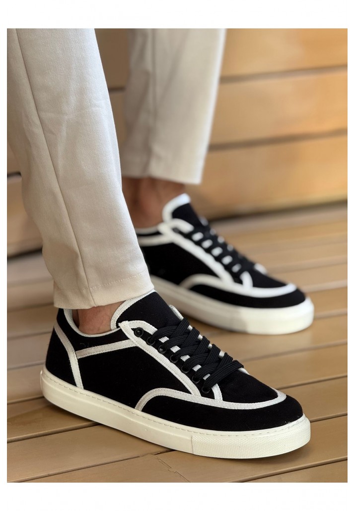 CH2505 - Keten Erkek Ayakkabı SİYAH - BEYAZ