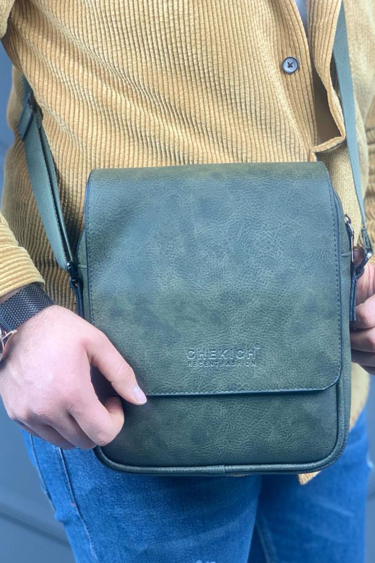 CNT009 - Cilt Deri Erkek Yan Omuz Çantası HAKI