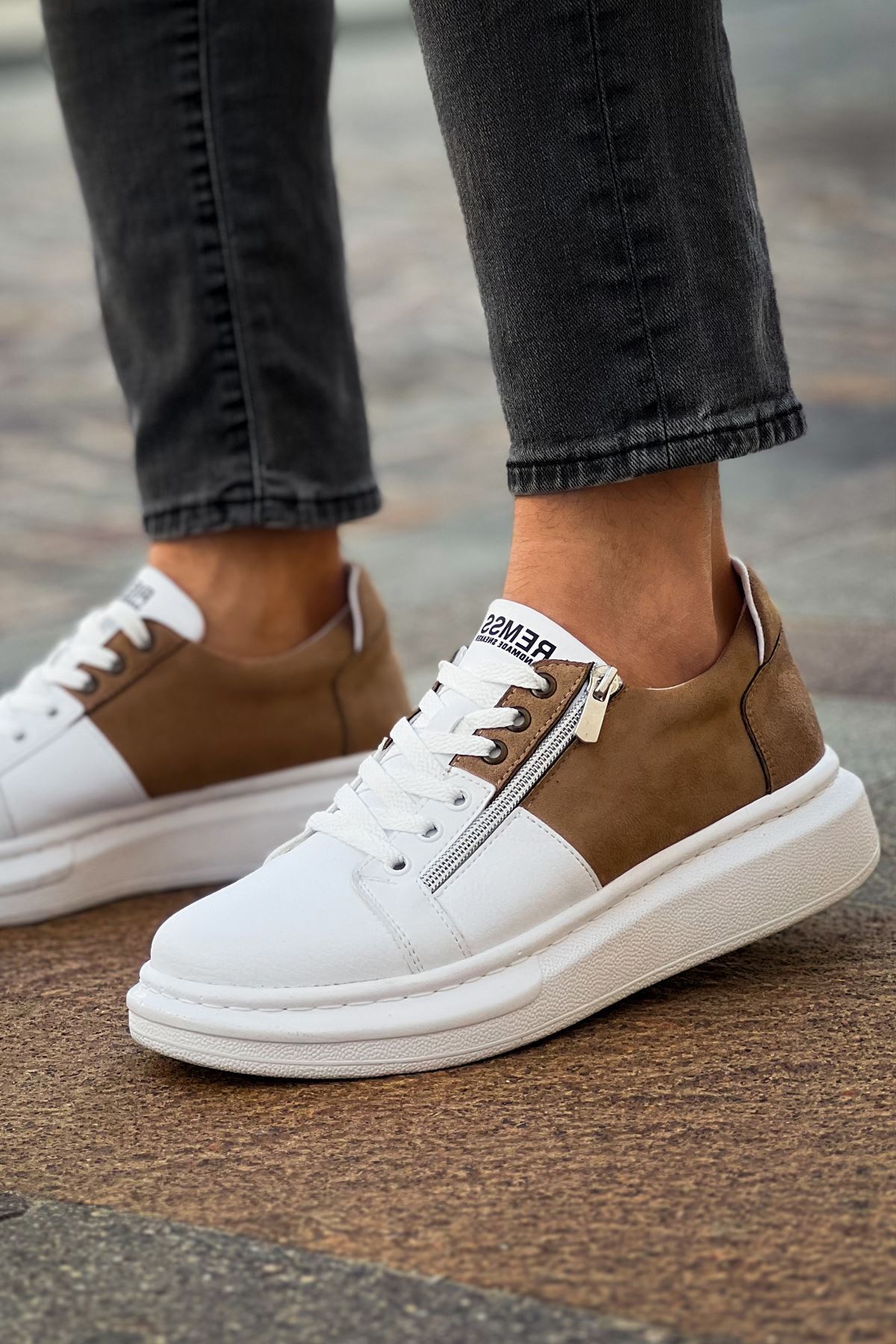RS601 - Lüx Süet Erkek Ayakkabı Beyaz/Vızon